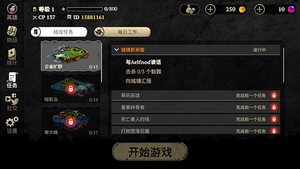 3、打开游戏的任务界面,先明确任务目标,接着点击开始游戏按钮,然后尝试完成该任务。