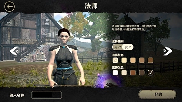 2、我们以法师为例,接着设定好性别、肤色、发色和昵称,就能开启冒险之旅了。