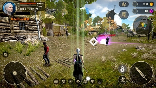 4、主要操作方式为:通过左侧摇杆控制角色移动,滑动右侧屏幕调整视角,右下角的按键则用于释放技能与发起攻击。
