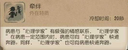 实战要点:牵绊这一效果,需病患与“心理学家”保持在特定距离范围内才会生效。因此,只有精准把控好彼此间的距离,才能实现双方相互靠近。要是双方距离过远,或者在跑动过程中遭遇障碍物,就会停止奔跑。