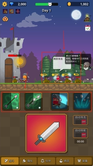 1、持续挑战关卡积攒经验,试着提升各类技能等级,所有技能不仅特效华丽而且攻击力强劲,能为战斗带来更丰富的战术策略。