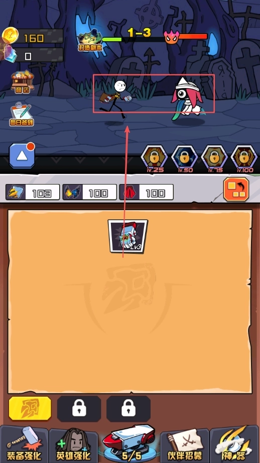 4、努力完成关卡任务获得丰厚奖励,解锁新场景和更高级的装备合成配方,不断提升角色能力和装备等级水平。