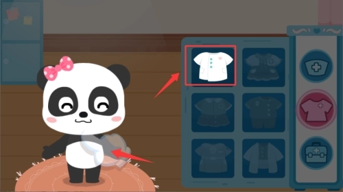 2、给熊猫角色挑选白色的医护服饰,做好职业装扮这一步骤。