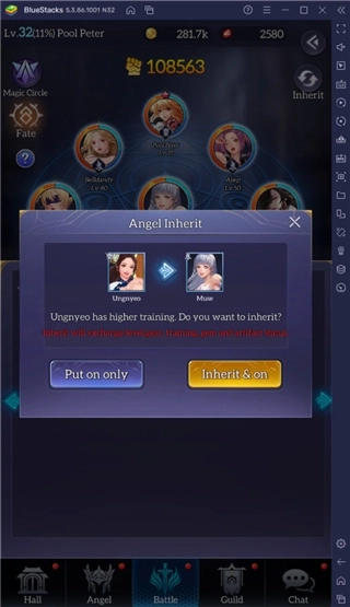 空闲天使具备一项继承机制:当阵容里用较弱的天使替换较强的天使时,较强天使的属性与升级状态会转移至较弱的天使。你也可以选择不启用继承功能,让较弱天使维持其原有的属性。