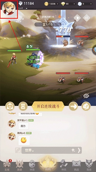 1、进入我的魔法英雄伙伴手机版,点击左上角头像;