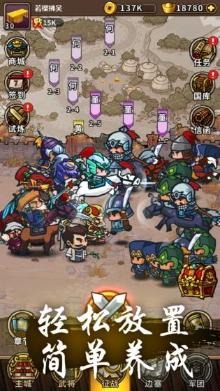 超过三百位经典三国名将以Q版形象登场,搭配三十余种特色兵种可供培养升级,助你打造专属的最强军团。25个上阵名额可自由组合,攻守阵型能随心切换,用智商压制对手数值,才是真正的制胜之道。