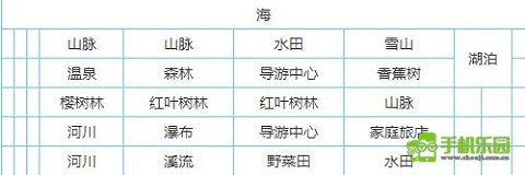 稻田 + 民宿 = 地酒山 + 民宿 = 野猪锅温泉旅馆 + 樱 = 樱桃派温泉旅馆 + 森林 = 香蕉欧蕾酒店 + 草原 = 海鲜沙拉酒店 + 牧场 = 牛排