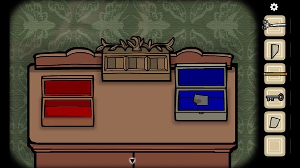 左边的盒子里装着金色钥匙,右边的装置类似华容道,只要把上方能滑动的图案与下方的对应起来就行。