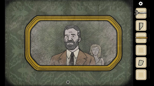 柜子上放着一台复读机,看样子是用来播放磁带的。旁边还有一台打字机,以及一株植物。用剪刀能剪下它的树叶。门旁边的开关可以用来开灯,灯里面藏着一些照片碎片。
