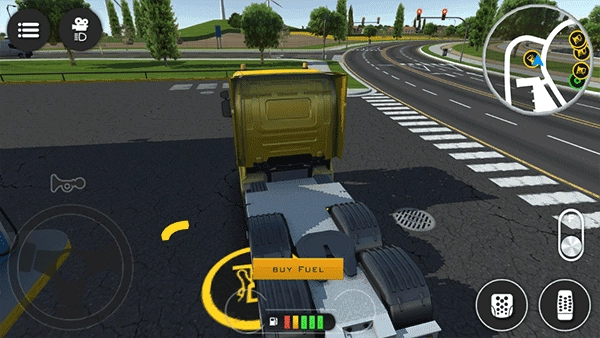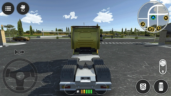 4、操作简洁直观:左侧的虚拟方向盘用于控制方向,右侧的油门、刹车和倒挡可一键操控,滑动屏幕能够自由切换视角。