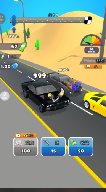 3、轻点屏幕即可开启加速,点击获取全新活塞升级,提升速度超越沿途车辆。