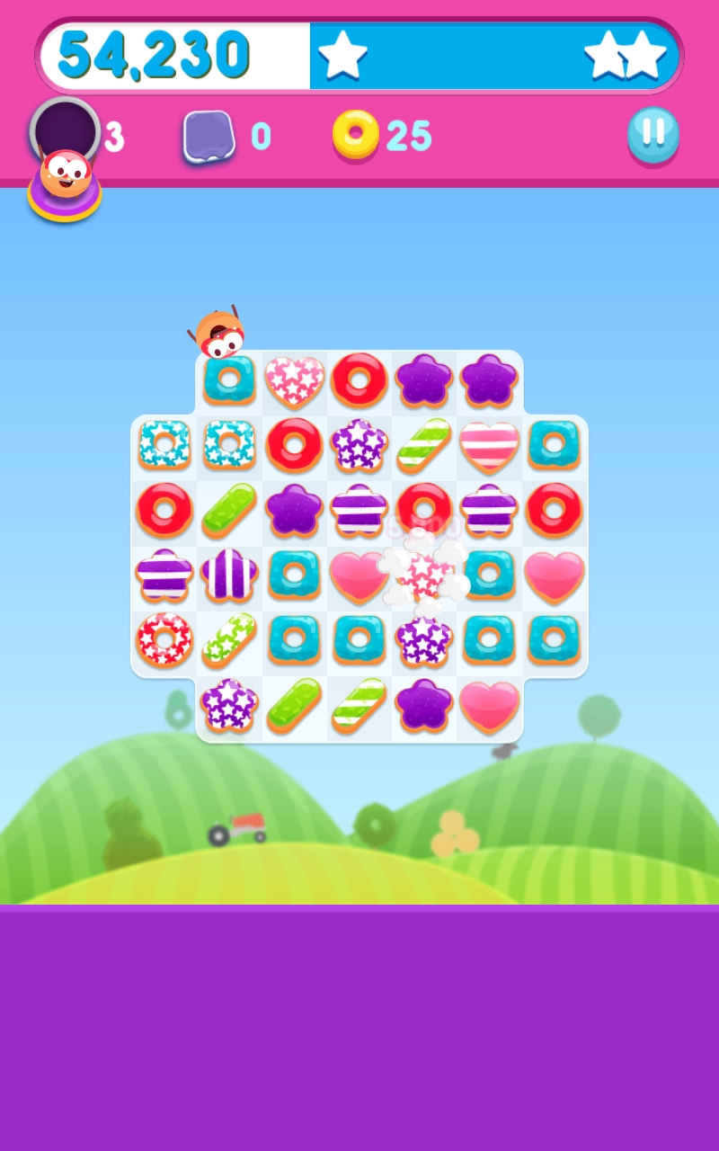 你可以充分运用自己的智慧,用最快的速度消除大量甜甜圈。
