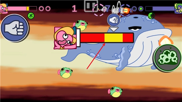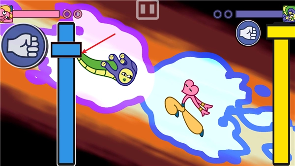 当玩家被敌方攻击陷入眩晕状态时,需将方块停在指定的黄色区域来恢复正常状态。