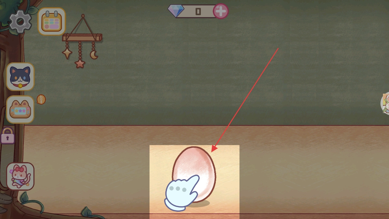 在室内环境里,找到那个粉粉的蛋状物品并点击它,就能开启孵化之类的互动环节,还能解锁新的猫咪伙伴或者游戏里的道具。
