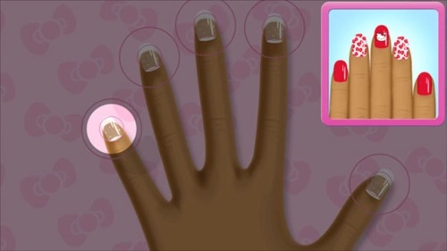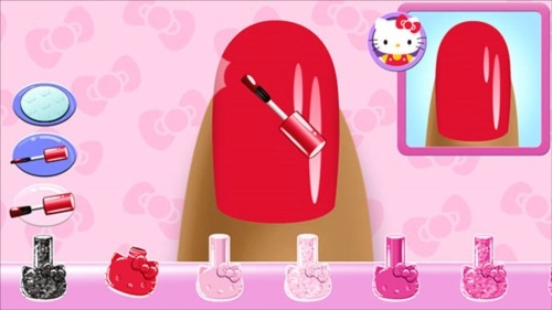 2. 走进HelloKitty的美甲店,挑选相应模式,开始为顾客进行美甲。