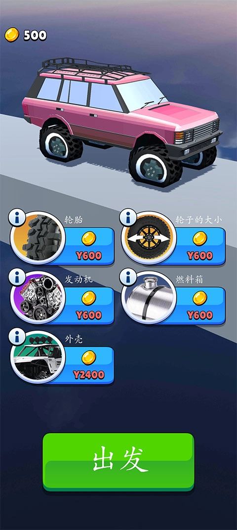 进入游戏的入口是“出发”按钮,点击后即可开启游戏。在游戏过程中,通过点击屏幕来操控车辆前进。当遇到较大坡度的路段时,要注意调整车速,避免车辆发生侧翻。