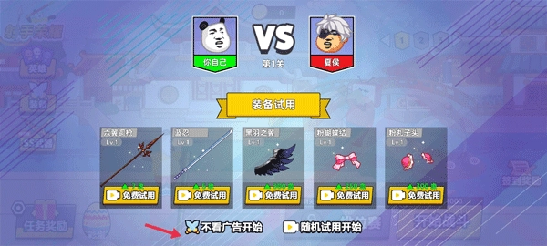 通过战斗获取金币,前往装备界面解锁武器、头饰等道具,可在传说武器与普通武器栏之间切换,点击装备即可提升角色属性、强化战斗能力。