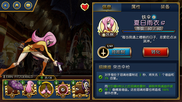 每日会轮换开放2个角色的专属每日活动(当前轮换池里暂时只有1个角色)。这些每日活动关卡设有4个难度梯度:基础难度产出对应角色的铜技能;高级难度掉落银技能;专家难度可获取金技能;大师难度则会产出金技能和随机元素石碎片,是玩家刷取角色技能的核心关卡。 除角色专属活动外,该界面还包含“被诅咒的实验室”模式。此模式每周刷新一次,对新手而言难度较大,建议积累一定练度后再尝试挑战。通关后可获得大量金币、技能点,以及铜、银、金钥匙各一把;其中的宝箱关卡还有小概率掉落钻石钥匙。