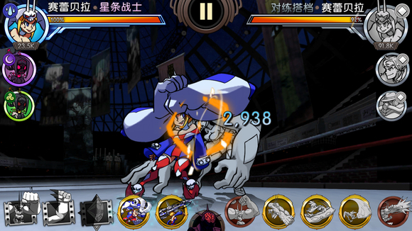 战斗界面布局清晰:左上角显示我方角色,点击头像即可切换队员;左下角排列着我方可用招式,点击对应图标就能释放技能。右侧区域则是敌方界面,实时关注敌人超必杀的能量充能进度,能帮助玩家更好地判断战场态势。界面正下方设有战斗辅助按钮,点亮后角色会进入自动战斗模式,适合在挑战简单关卡时使用。顶部中央是暂停键,暂停后可查看双方角色的详细能力属性以及当前战斗的具体规则说明。 基础操作方面:快速连续点击屏幕可触发普通攻击;长按屏幕则释放蓄力攻击(解锁技能树后,蓄力攻击将获得破防效果);同时用双指按住屏幕为防御姿态;双指按住时,若移动其中一根手指,即可施展出投技(投技同样具备破防能力);向右滑动屏幕触发冲刺攻击,在冲刺攻击后再次右滑,可衔接二段冲刺攻击;向左滑动为回退动作;向上滑动释放上挑攻击,上挑攻击命中敌人后,立即点击屏幕即可触发浮空连击;向下滑动则是下段攻击。此外,部分角色还拥有独特的专属特殊动作,需要玩家在实战中逐步探索掌握。