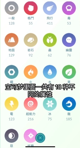 宝可梦go这款游戏中一共有18款不同属性的精灵