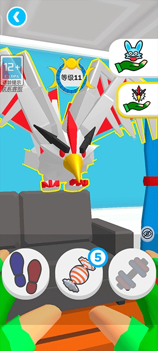面对可爱的宠物,我们能够通过投喂糖果来提升等级,每投喂一颗糖果就能直接升一级(糖果会在地图的随机位置刷新,也可以通过击败对手获取),另外还能通过锻炼来升级,点击最左侧的按钮就可以出门去探险。