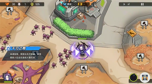1技能:千刃之舞:以高速旋转之势释放无尽能量,将周围敌人吸附至身边并造成大量伤害。
