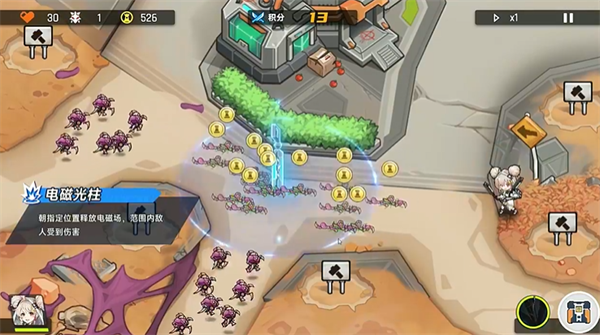 1技能:电磁光柱:朝指定方向的目标区域释放电磁场,该区域内的敌人会受到相应伤害