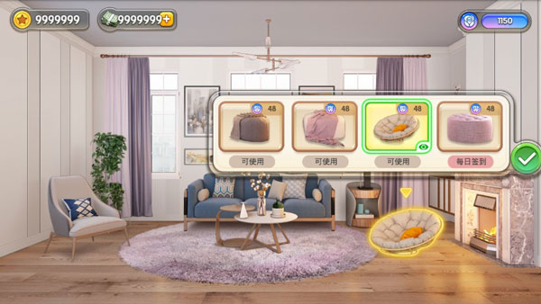 在这里,玩家只需点击想要更换的家具并挑选款式,就能完成替换操作,并且每次更换都会提升温馨度。