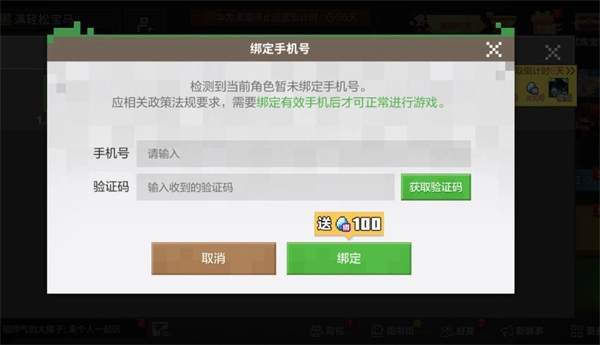 点击后会弹出一个窗口,第一步要求玩家绑定个人手机号。需要留意的是,此手机号将用于后续官服登录时的转服同步游戏资产操作,且该手机号下需确保不存在相关我的世界官服角色账号数据,不然会覆盖官服已有的数据,造成账号数据丢失。