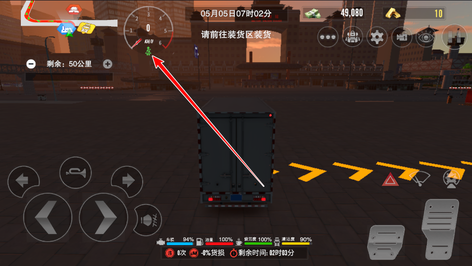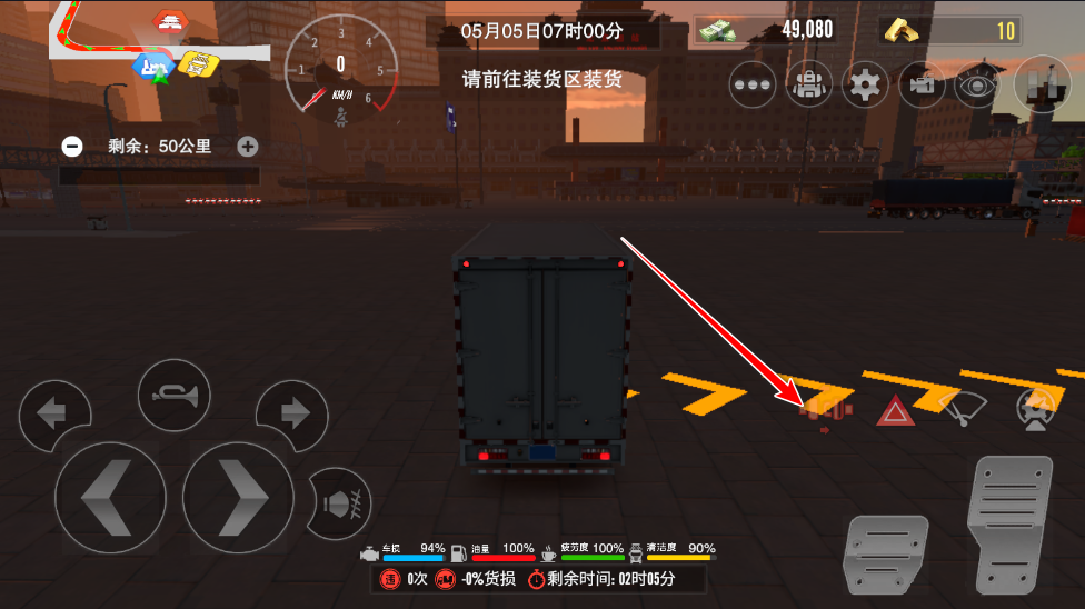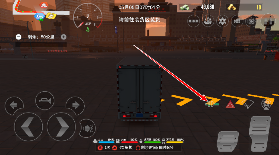 到达装货区域后,点击屏幕右侧的【装货】按钮。等进度条走完,装货就成功了,接下来就可以准备出发运输了。