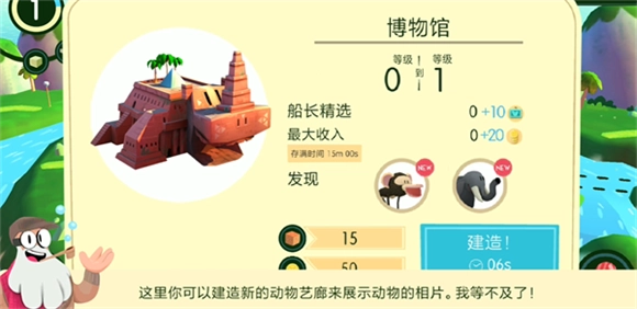 动物艺廊建成之后,记得还要建造码头、售票亭,以及连接岛屿的桥梁。