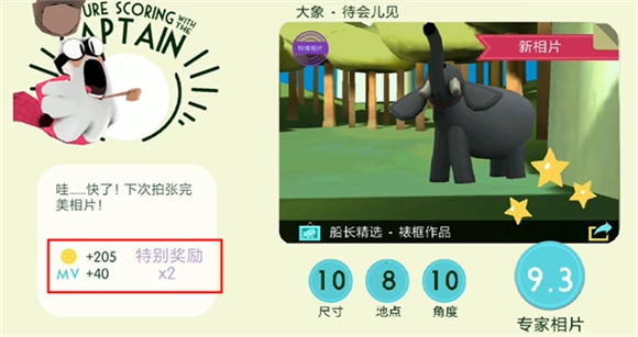 获得的金币能够用于修建新的动物艺廊,以此来展示动物的照片。