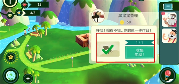 游戏采用可爱的3D卡通画风,整体氛围轻松愉悦。玩家将搭乘热气球前往各地探险,目标是寻找并拍摄独特的小动物。每个任务都限制了拍摄次数,提升了游戏的挑战性——比如一只小鹿可能仅在画面中短暂现身,玩家需要快速反应才能定格它的身影。