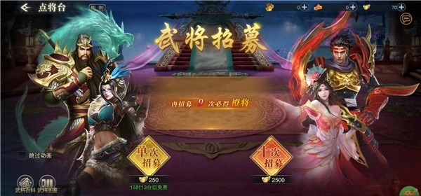 1、玩家进入游戏中,可前往点将台进行武将招募。