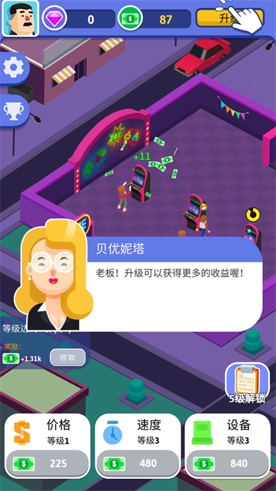 机台可自由摆放,热门机型优先安排黄金位置,还能解锁并升级其性能与外观。