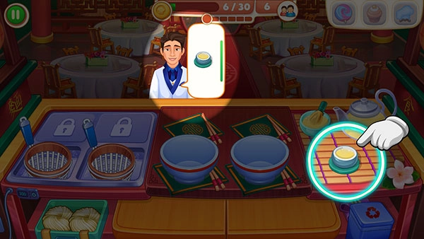 接下来是教学关卡,我们遇到了第一位顾客,他头顶气泡里显示的正是他要点的餐品。