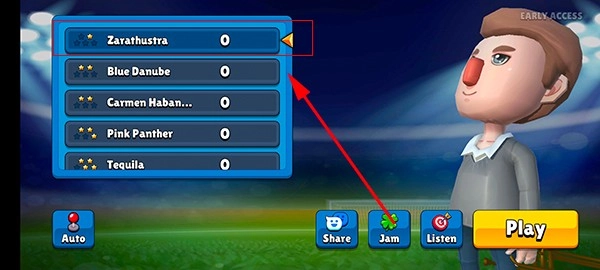 3、完成设置后,可在左侧菜单栏挑选想要演奏的曲目,界面上显示的星级代表乐谱难度,星级数量越多意味着难度越高。选好曲目后,点击右下角的【Play】按钮就能进入游戏。