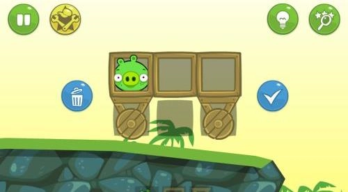 这款游戏的风格和《愤怒的小鸟》相近,不过原本的绿皮猪这次意外地成了主角,游戏的玩法也有了不小的改变。