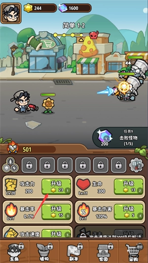 1、玩家击败僵尸后能获取金币,花费金币来增强自身属性,就能更顺利地战胜僵尸