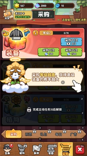 2、能够借助采购装备的方式增强自身能力,采购等级越高,获取优质装备的几率就越大。