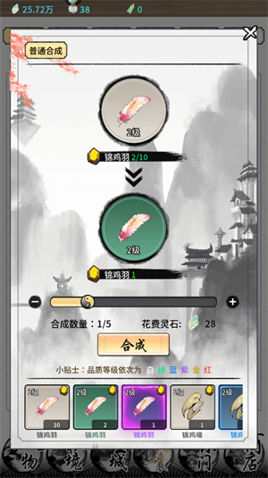 3、玩家能够借助合成功能,把低级材料提升为更高级的材料