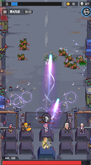游戏采用像素画风搭配末日背景,打造出别具一格的游玩感受。玩家既能体验单手操作的割草塔防玩法,快速上手,又能借助策略性战斗与角色养成,领略到游戏的深度和挑战性。