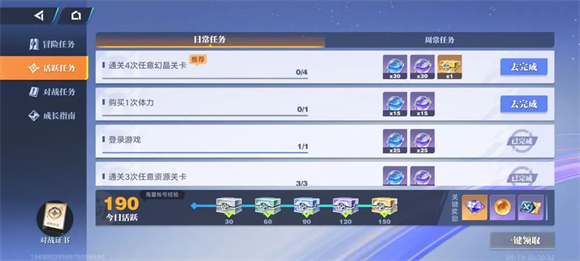 2、每日活跃任务是必做项,其中120和150这两个活跃档位的箱子能拿到60钻石。快速完成每日任务的方法:先登录游戏,接着进行战队建设,然后扫荡任意关卡三次(顺便完成一次小传),再赢下两场竞技对战,最后给任意英雄升1级(同时把一个技能也升1级),这样大概10分钟就能搞定每日任务,效率挺高的。