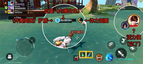 3、玩家的所有攻击行为都会消耗体力,体力耗尽后便无法攻击;释放技能会消耗活力,活力值为空时无法释放技能,射手则无法进行普攻。此时将英雄切换到后台,即可自动消耗药剂补充活力。