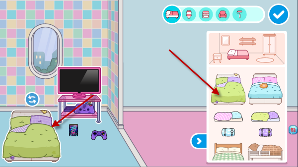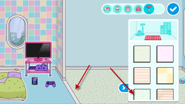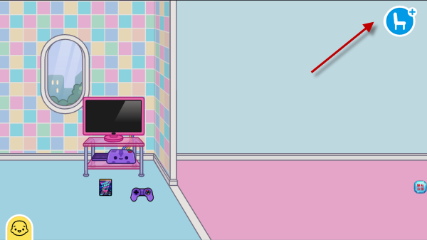 5、在房间里点击右上角的蓝色图标就能开始装修啦。