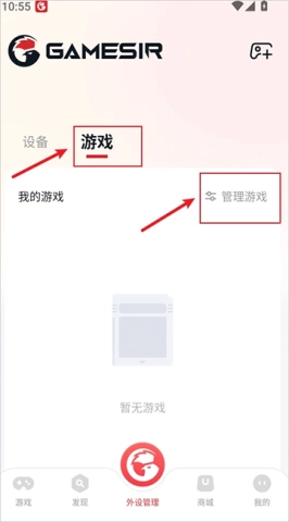2、接下来选择“游戏”,然后再点击“管理游戏”。