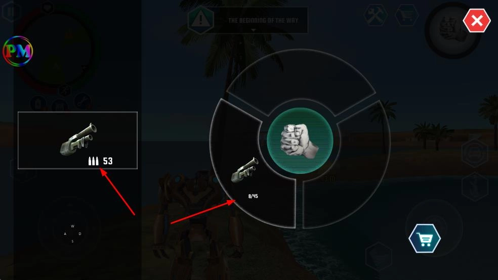 2、点击右侧的功能按钮,打开武器轮盘,选择枪械类武器,比如显示有53发子弹的那把,进行装备切换。