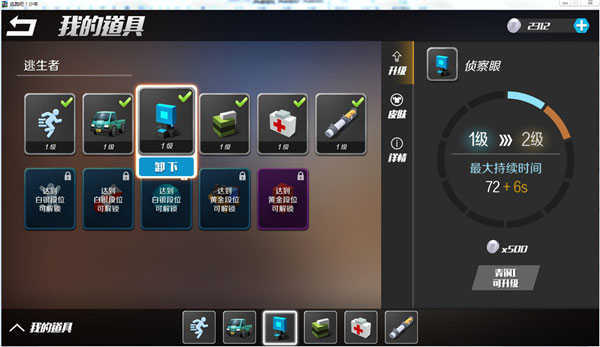 目前达到白银段位可解锁“跳高”“生命上限”和“雷达”这三张道具卡,黄金段位则能解锁“巡逻犬”与“阻挡箱”两张道具卡。