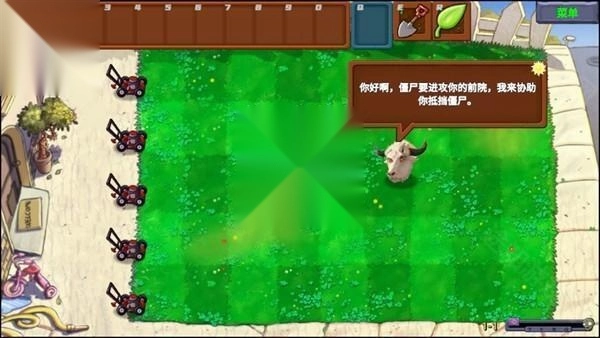 4、牛头为我们搞到了几个向日葵,这一来就能够源源不断生产阳光。游戏的后续玩法非常简单,还请牛头帮助我们顺利通关。