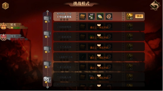 3、关卡可重复挑战,主要升级武将和达成三星条件。